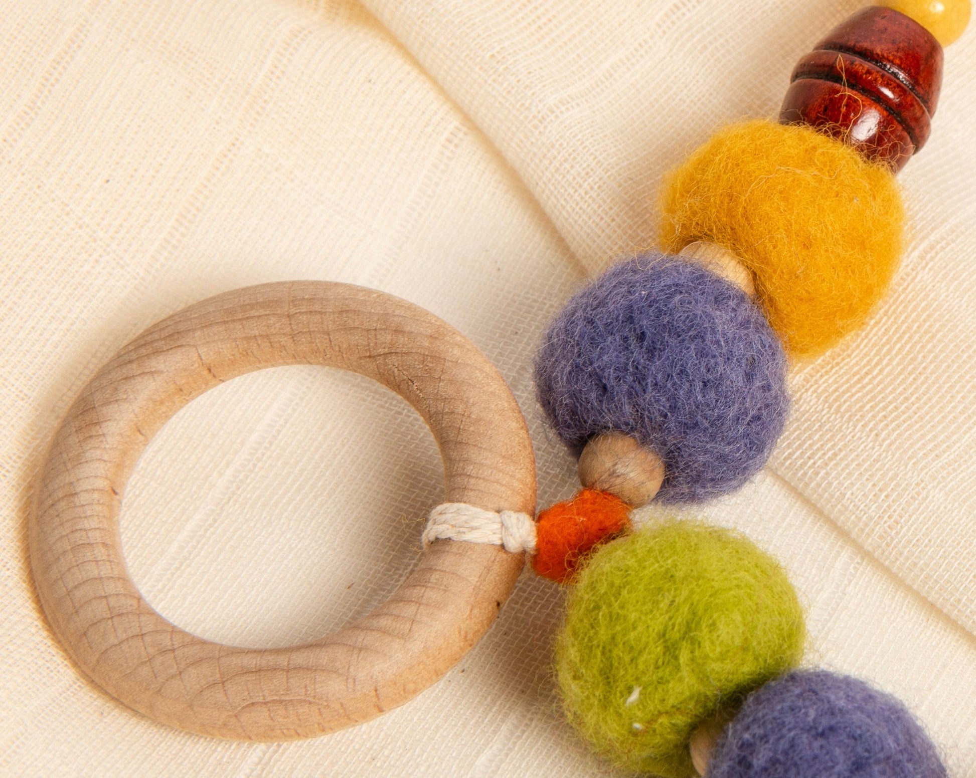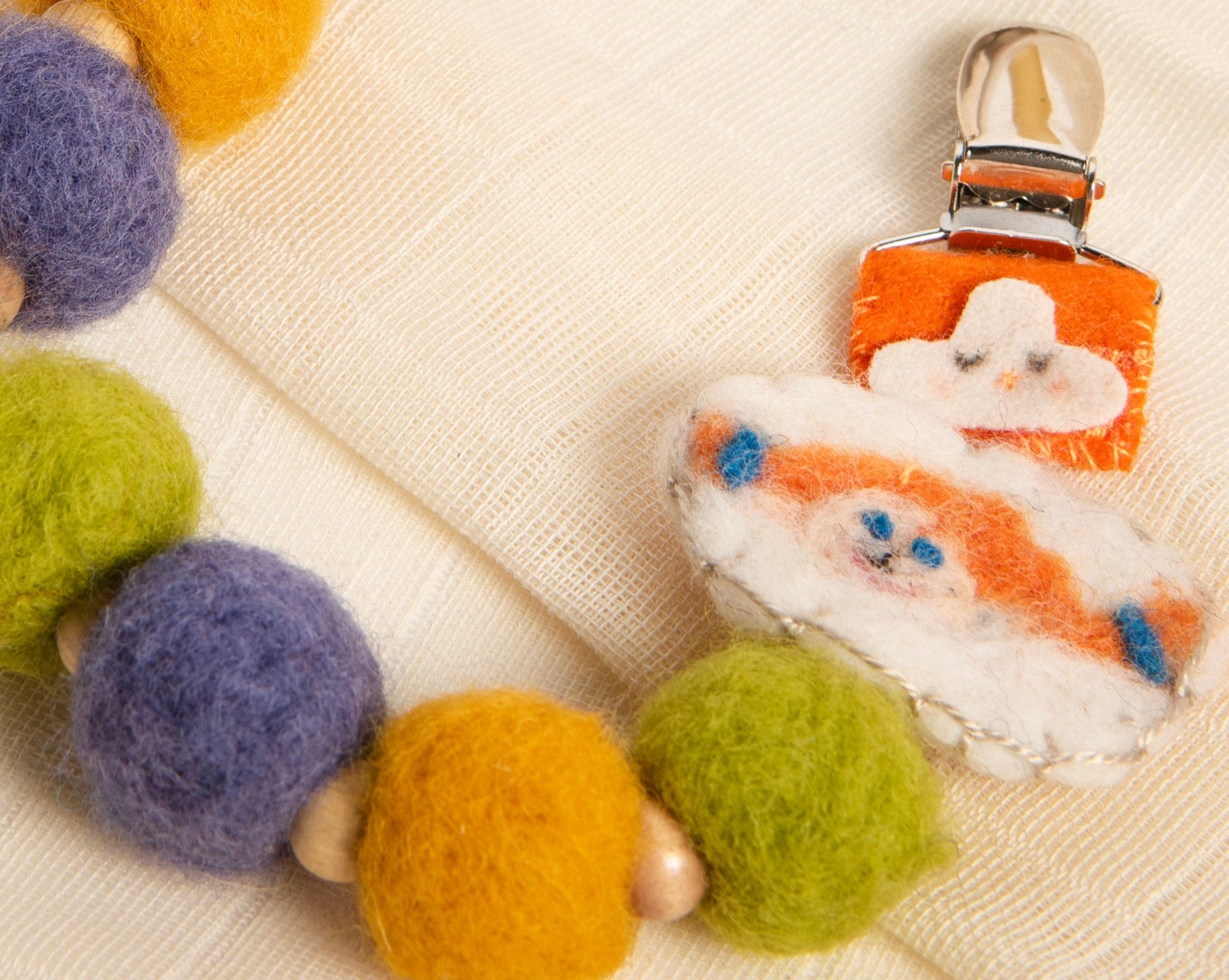 Diese Spielzeugkette ist ein Spielzeug für Kinder und Babys aus dem Material Filz. Jede Spielzeugkette wird von uns einzeln per Hand in Köln hergestellt. Die Vorlage zu dieser Spielzeugkette seht Ihr auf den Bildern, euer Unikat kann leicht davon abweichen, dafür wird es einzigartig.